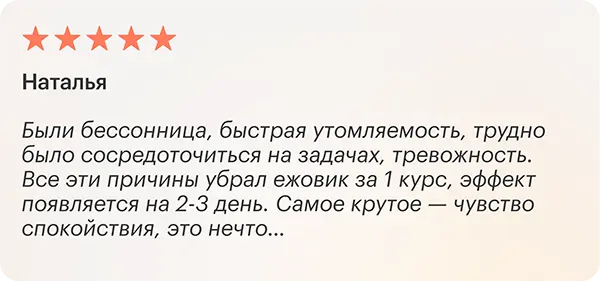 К нейропротекторным эффектам биологически активного состава ежовика гребенчатого относится не только улучшение когнитивного статуса, но и снижение проявлений депрессии, тревожности, усиление стрессоустойчивости. И хотя масштабных клинических исследований, которые позволили бы назвать ежовик альтернативой современным антидепрессантам, еще не проводилось, его уже известные свойства и механизм действия содержащихся в нем веществ дают основание для надежды. Впрочем, подобный эффект уже подтвержден исследованиями пока на небольших выборках участников [7, 8].